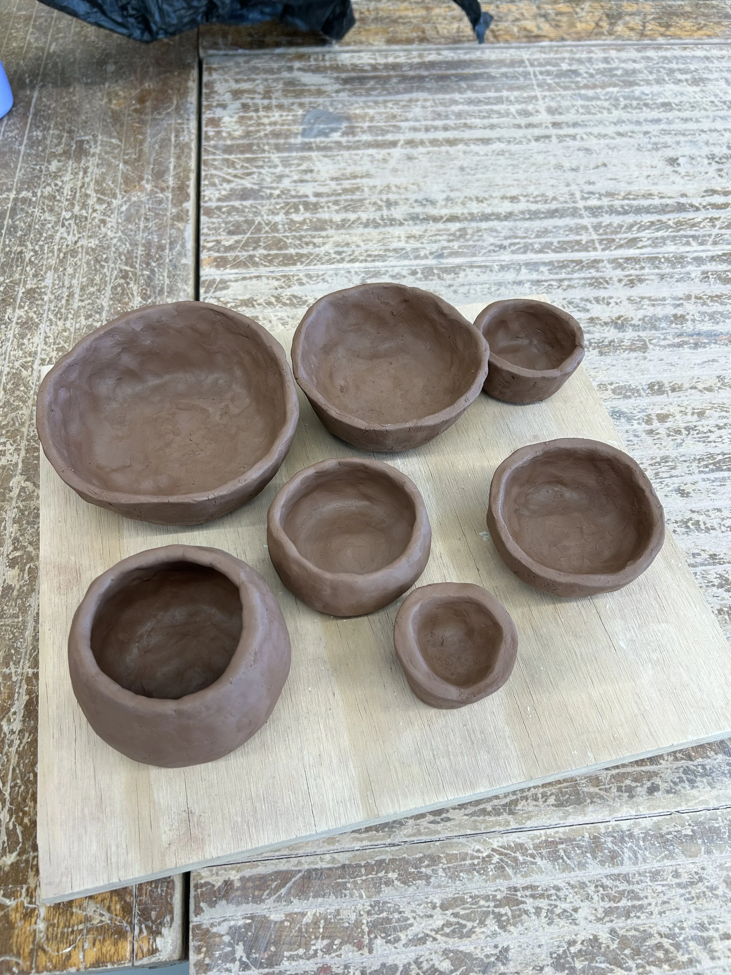 Pinch Pot Handbuilt Bowls, terracotta bisque fired